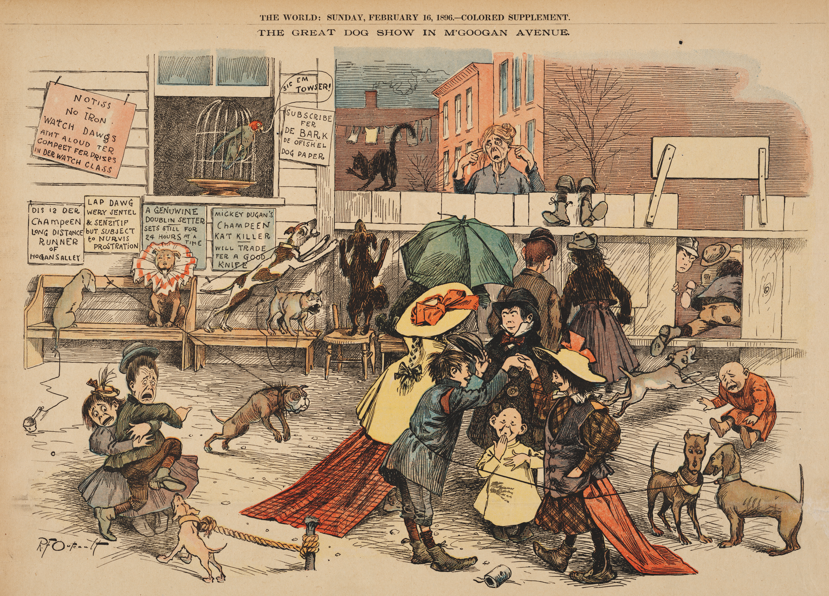 Otros repiten que fue The Yellow Kid el pionero del género, por ser el primero en incluir globos o bocadillos. Richard F. Outcault creó esta tira de prensa que el 16 de febrero de 1896 mostraba un globo en el que un loro habla.